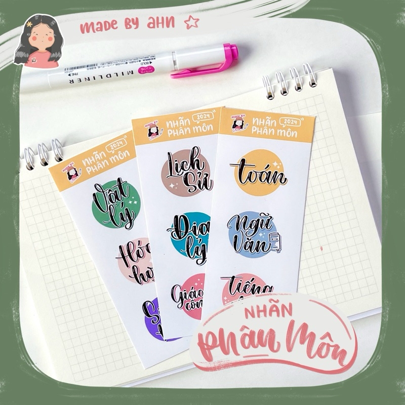 TÌM VỞ CHƯA BAO GIỜ DỄ DÀNG ĐẾN THẾ? Nhãn phân môn là một sản phẩm phục vụ học tập, giúp cho việc học của bạn trở nên thú vị hơn nhờ những nhãn dán dễ thương phân chia các môn học. Các bạn có thể dùng nhãn phân môn để: - Dán gáy sách, vở để việc soạn bài vở trở nên dễ dàng hơn. - Phân chia các môn khi viết chung một cuốn vở. - Dán trang trí sổ tay, Bulletjournal,… —- THÔNG TIN CHI TIẾT - 1 pack gồm 3 tấm (9 môn) - Chất liệu: Decal chỉ cần bóc ra và dán - Kích thước: 5,5x13cm/tấm - Màu sắc tươi sáng, kháng nước tương đối, chống bay màu. —- CÁM ƠN MỌI NGƯỜI ĐÃ XEM VÀ CHÚC MỘT NGÀY TỐT LÀNH :v
