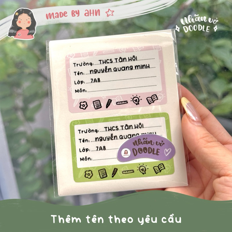 |NEW 2025| Set 12 Nhãn vở DOODLE (không môn) - In tên riêng theo yêu cầu - MADE BY AHN thiết kế