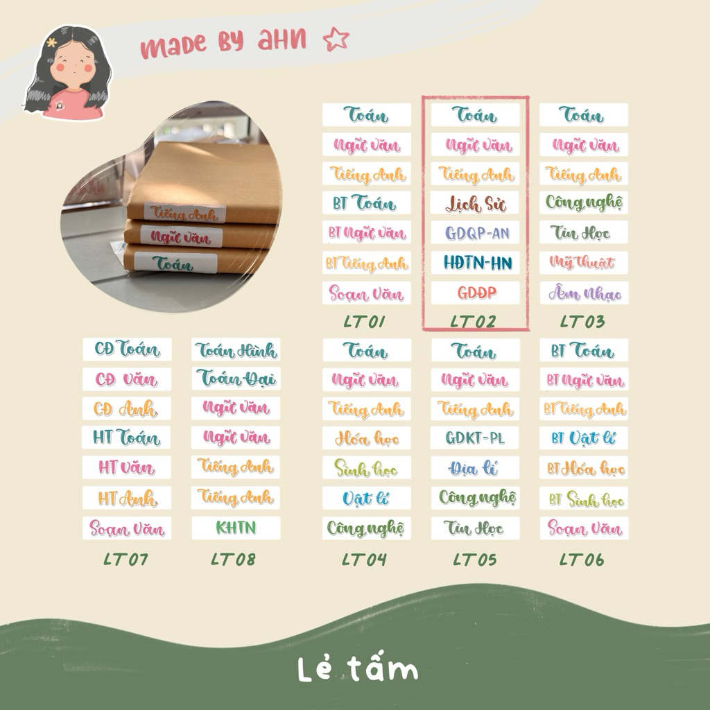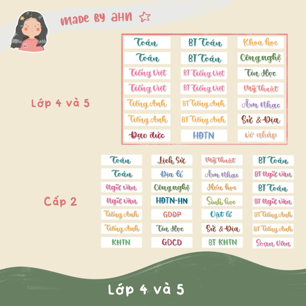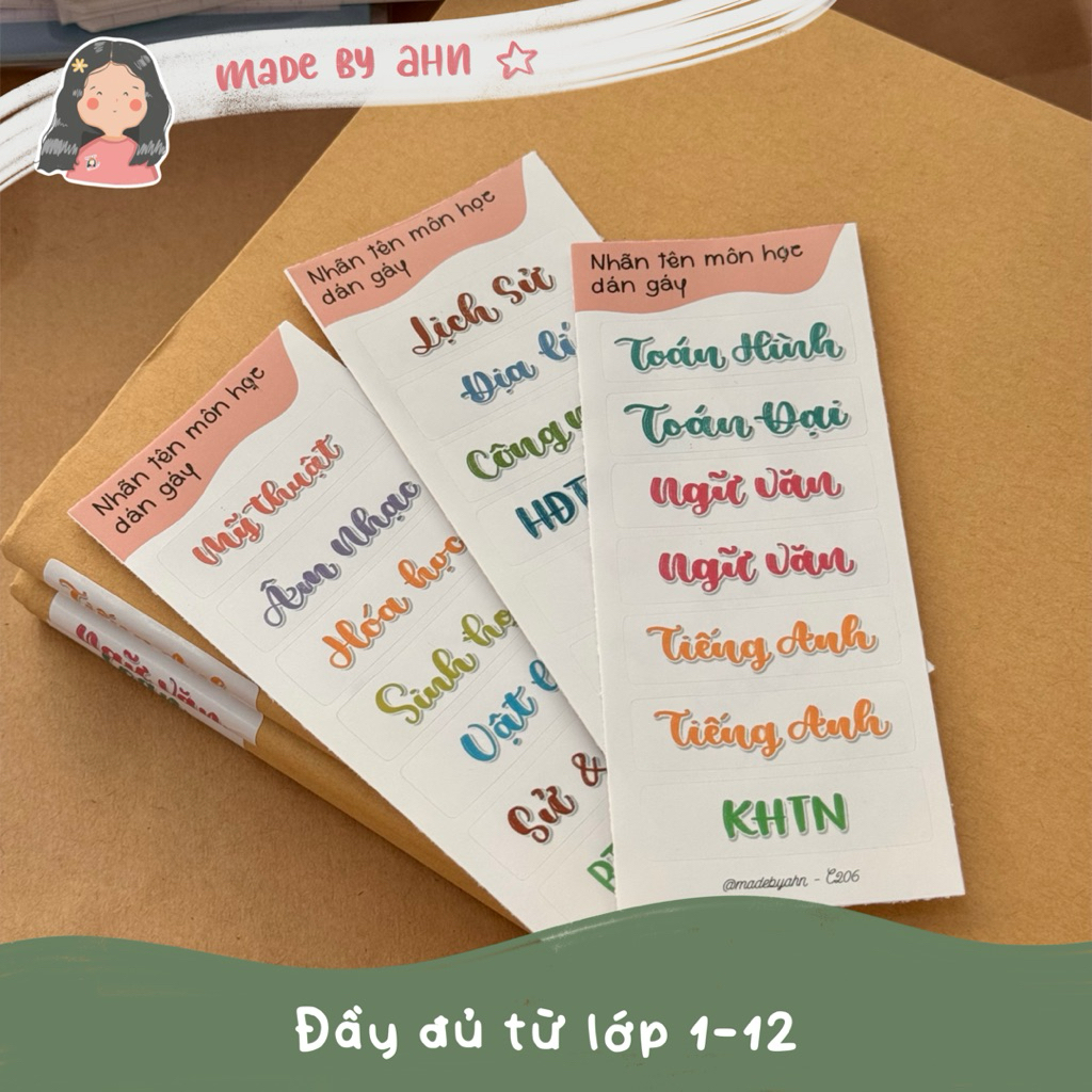 Sticker nhãn tên môn học dán gáy sách vở tiện lợi - MADE BY AHN thiết kế