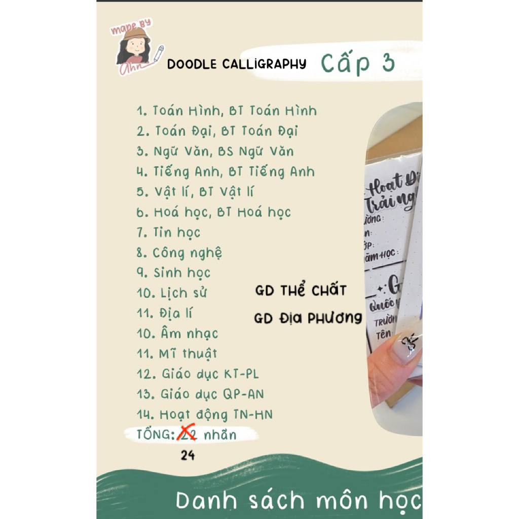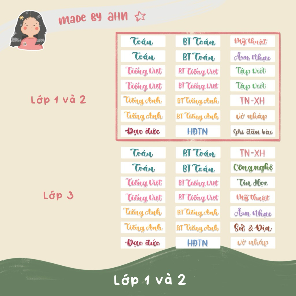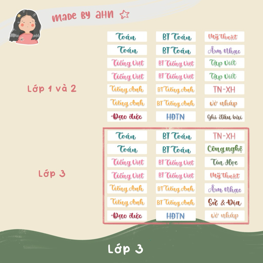Sticker nhãn tên môn học dán gáy sách vở tiện lợi - MADE BY AHN thiết kế