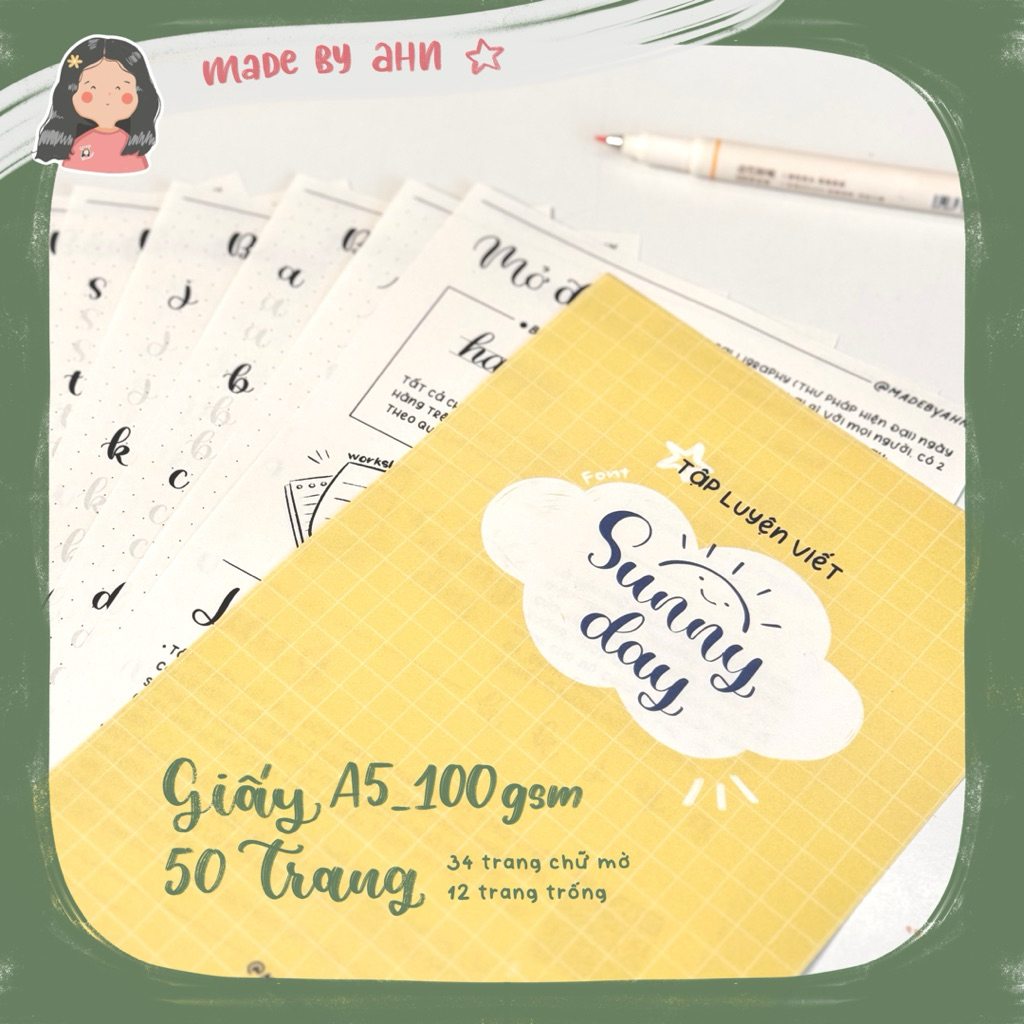 Bộ luyện viết Calligraphy, tập luyện viết Calligraphy nhiều font chữ - MADE BY AHN thiết kế